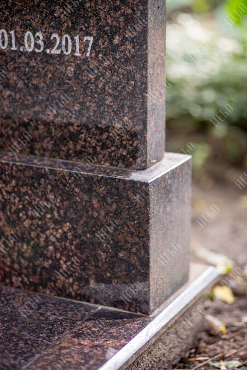 Памятник без креста с вертикальной стелой и закрытым надгробием выполнен в классических темных оттенках. Стела ритуального изделия имеет аркообразный верх и фигурные углы. Закрытое надгробие ровное, без дополнительных элементов, что значительно упрощает уход за ритуальным изделием. Размеры памятника и соотношение объемов стелы к надгробию проработаны специалистами с учетом имеющейся нагрузки и визуального восприятия. Такой подход гарантирует долговечность и исключает искажения памятника.