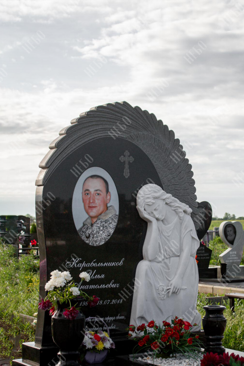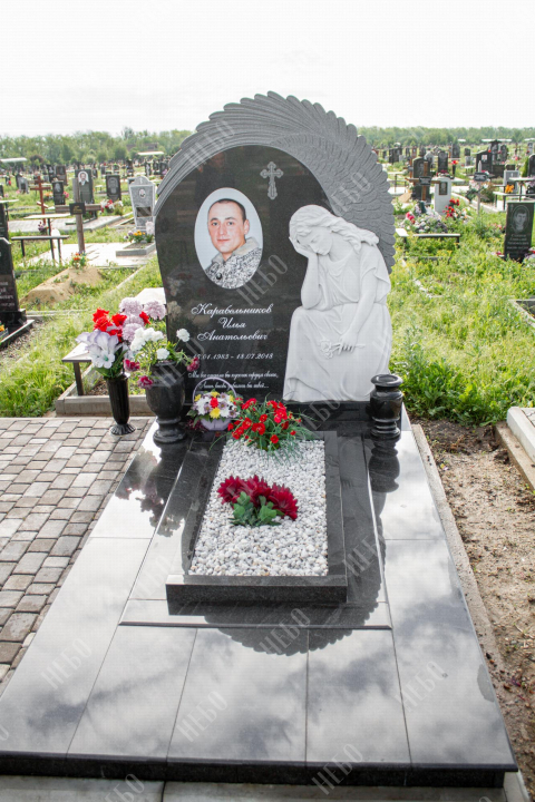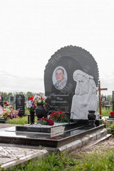 Памятник фрезерный с фигурой ангела и открытым надгробием, заказать в Кисловодске.