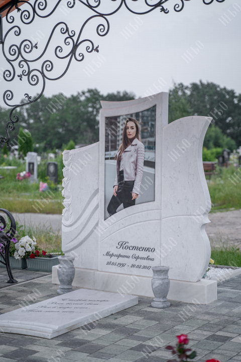 Ассиметричный фрезерный памятник с широкой стелой и закрытым надгробием. Ритуальное изделие выполнено в светлых оттенках и отличается эксклюзивным дизайном стелы. Вертикальная плита визуально разделена на три части и сочетает в себе легкость ассиметричных линий и фрезерные элементы в виде цветов. С помощью фрезеровки в камне высекаются углубления по заданным макетам, придавая памятнику объем, позволяя комбинировать различные элементы и создавать сложные фигуры. Закрытое надгробие упрощает уход за ритуальным изделием и позволяет расположить эпитафию, сделав на ней акцент. Размеры памятника и соотношение объемов стелы к надгробию проработаны специалистами с учетом имеющейся нагрузки и визуального восприятия. Такой подход гарантирует долговечность и исключает искажения памятника.