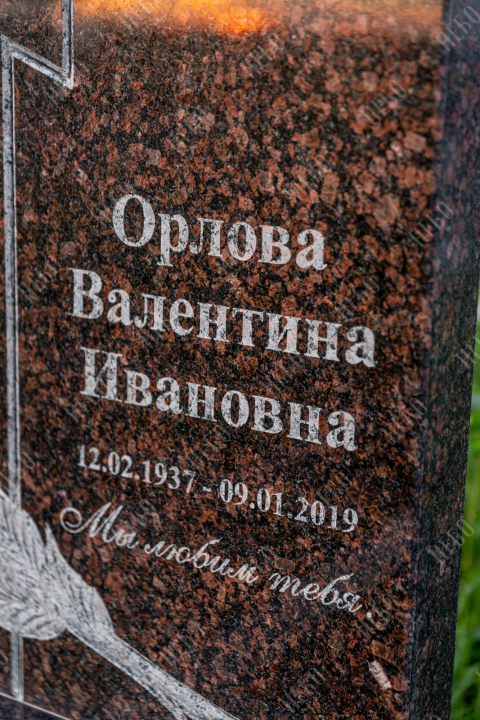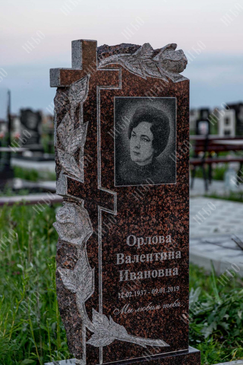 Памятник фрезерный с крестом, открытым надгробием и фигурной стелой. Использование фрезеровки в изготовлении ритуальных изделий гарантирует высочайшую точность исполнения запланированного дизайна. С помощью этой технологии в камне высекаются углубления по заданным макетам, придавая памятнику объем, позволяя комбинировать различные элементы и создавать сложные фигуры. На фрезерованном памятнике удачно контрастируют цвета и в солнечную погоду играют тени от объемных деталей. Открытое надгробие позволит в дальнейшем использовать пространство на его поверхности для высадки цветов или других растений. Размеры стелы и надгробия соответствуют заданным нормам при имеющейся нагрузке и исключают деформации изделия со временем.