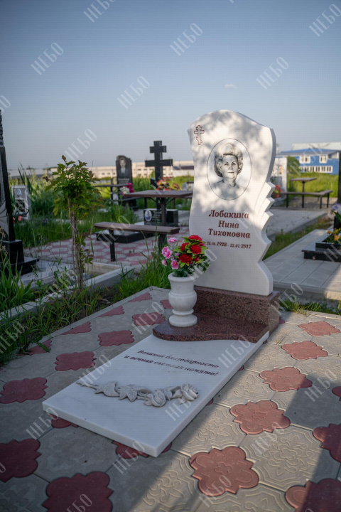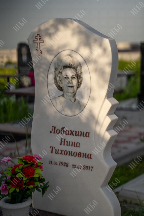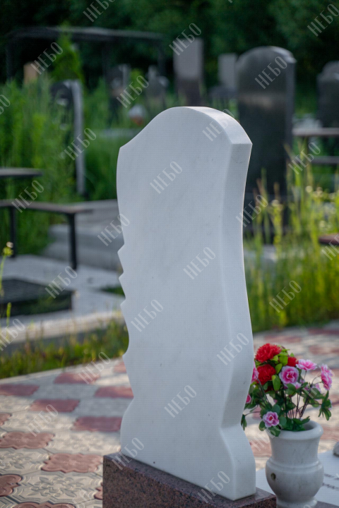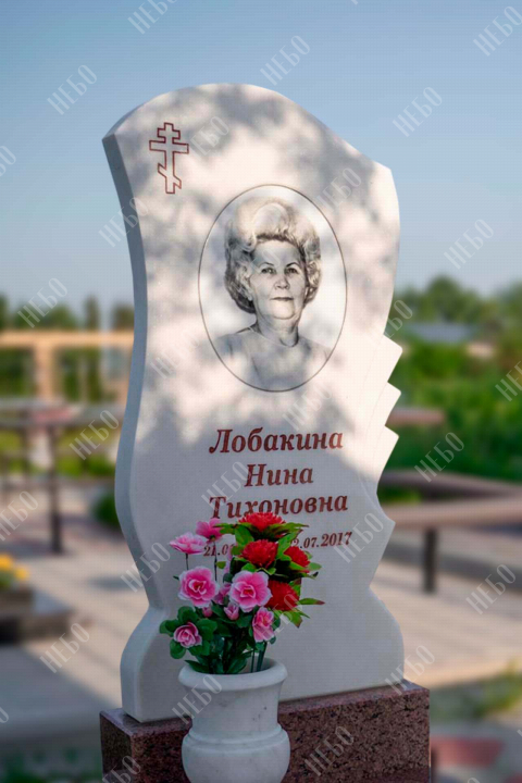 Христианский памятник с вертикальной фигурной стелой и закрытым надгробием выполнен с использованием декоративных элементов. Объемные розы белоснежного цвета, украшающие надгробную плиту, дополняют композицию ритуального изделия и отлично сочетаются с другими деталями памятника. Закрытое надгробие значительно упрощает уход за ритуальным изделием. Размеры памятника проработаны специалистами с учетом имеющейся нагрузки и визуального восприятия. Такой подход гарантирует долговечность и исключает искажения памятника.