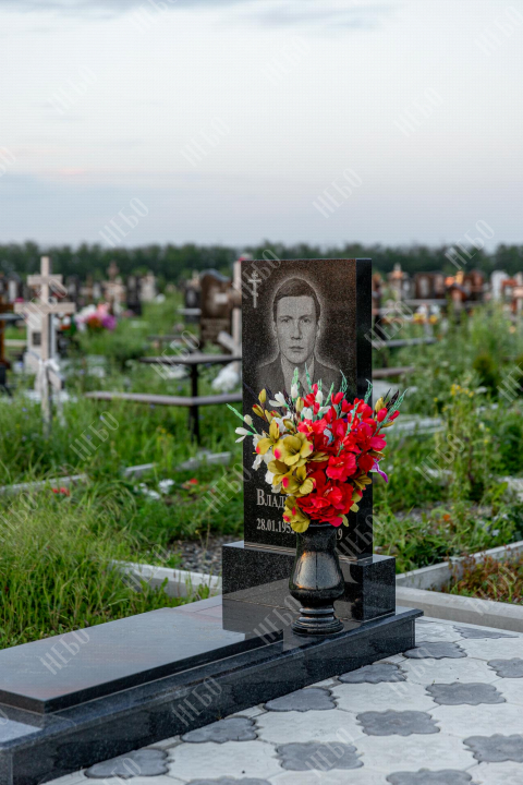 Прямой памятник для православного человека выполнен в строгом лаконичном стиле с использованием четких геометрических линий. Черный цвет и прямоугольные формы стелы и надгробия являются классической комбинацией, которая часто используется при изготовлении памятников. Закрытое гранитное надгробие упрощает уход за ритуальным изделием и позволяет расположить памятную надпись, сделав на ней акцент. При изготовлении памятника специалисты тщательно прорабатывают соотношение форм, размеров и нагрузку, чтобы исключить деформации и искажения изделия со временем.